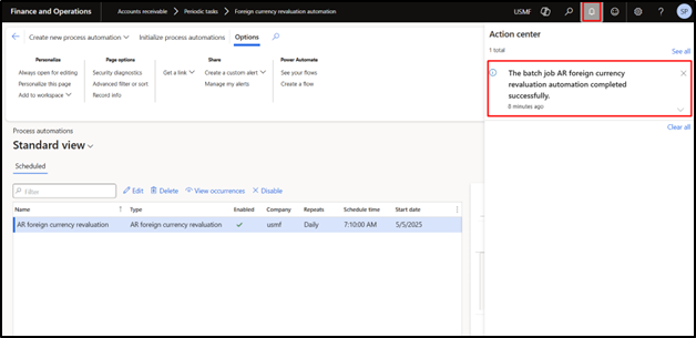 After setting up the automation, ensure the batch job is active so it can run according to the schedule. Users can easily track its status and view the results of the foreign currency revaluation.